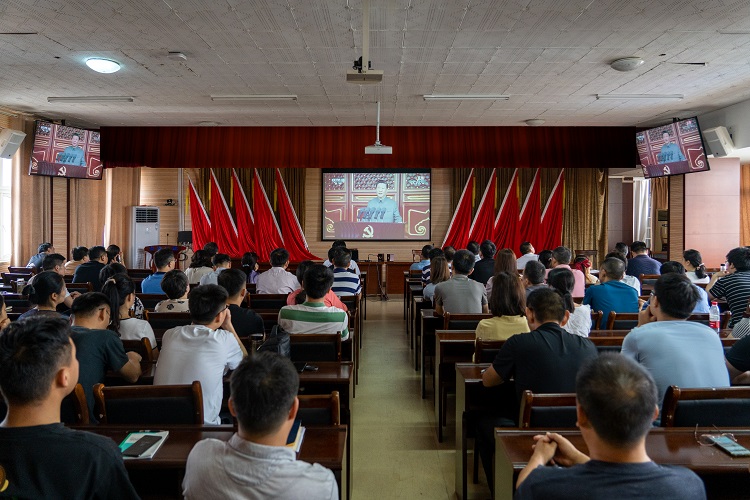 十公司機(jī)關(guān)、動(dòng)力三村項(xiàng)目、工投EPC項(xiàng)目、引江濟(jì)淮等項(xiàng)目組織黨團(tuán)員、入黨積極分子、職工近100余人觀看大會(huì)