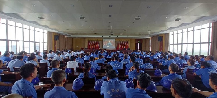 在公司重點(diǎn)項(xiàng)目——六安一中項(xiàng)目現(xiàn)場,來自所屬四公司、安裝公司、裝飾公司的30余名管理人員集中收看大會(huì)直播