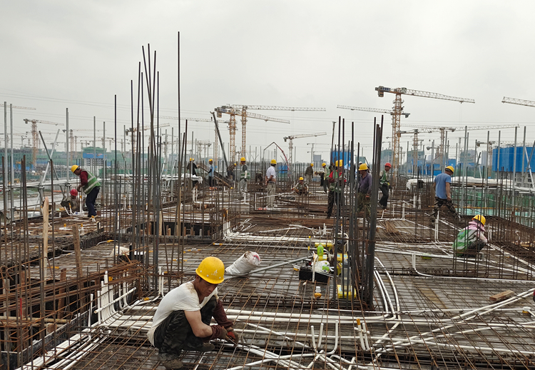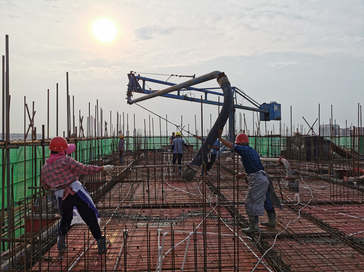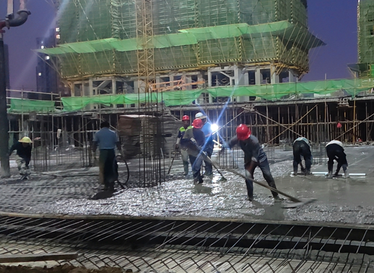 廈門公司假日期間汕頭悅江府北區(qū)項目11號樓進行地下室頂板趕工