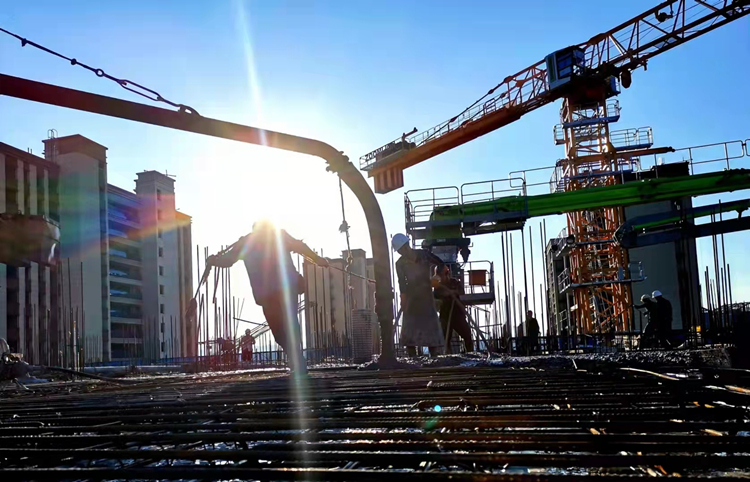 蚌埠公司固鎮(zhèn)漢城源筑項目中秋假期搶抓工期,圖為工人正在澆筑混凝土作業(yè)施工