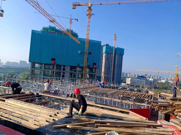 上海公司淄博明發(fā)世貿(mào)中心超高層項假日期間繼續(xù)進行3號樓商業(yè)樓頂板鋪設(shè)工作