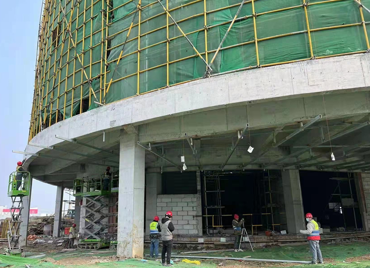 大年初二,在安徽三建合肥一中東校區(qū)項(xiàng)目施工現(xiàn)場(chǎng),一派熱火朝天場(chǎng)景,十幾輛曲臂車緊張作業(yè),施工“步履不?!?,項(xiàng)目部幕墻管理人員和50多名一線務(wù)工者放棄春節(jié)假期堅(jiān)守項(xiàng)目一線,掀起施工大戰(zhàn),強(qiáng)力推進(jìn)合肥一中東校區(qū)工程建設(shè)。目前,項(xiàng)目所有單體的幕墻外鋁板安裝已完成20%,教學(xué)樓、宿舍樓等12個(gè)單體已完成屋面鋁板安裝,除三葉草外12個(gè)單體已完成幕墻龍骨安裝。
