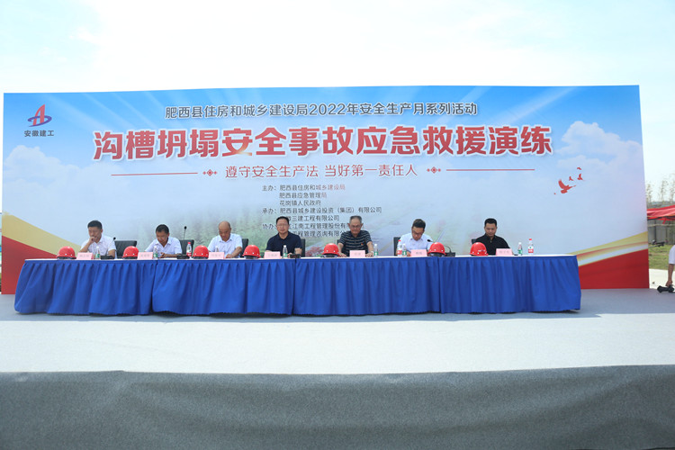 為深入推進(jìn)全國“安全生產(chǎn)月”活動(dòng),切實(shí)提升企業(yè)安全管理與應(yīng)急管理能力,6月26日下午3時(shí),肥西縣在我公司產(chǎn)融項(xiàng)目舉行“建設(shè)工程溝槽坍塌安全事故應(yīng)急救援演練”活動(dòng)。參加此次活動(dòng)有肥西縣副縣長(zhǎng)衛(wèi)涌波,肥西縣住房和城鄉(xiāng)建設(shè)局局長(zhǎng)劉家興,副局長(zhǎng)柳振,黨委委員、總工程師湯道勝,花崗鎮(zhèn)副書記、副鎮(zhèn)長(zhǎng)程子光,肥西縣城鄉(xiāng)建設(shè)投資(集團(tuán))有限公司總經(jīng)理?xiàng)钪久鳎?/span>公司黨委委員、副總經(jīng)理張斌及觀摩活動(dòng)的各施工建設(shè)單位人員共計(jì)120余人。