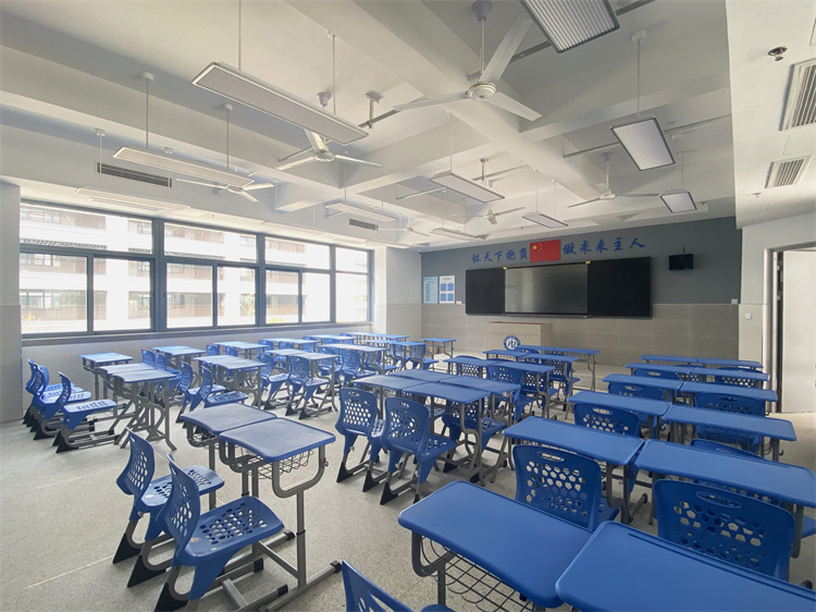 步入校園,映入眼簾的是“三葉草”造型的行政與服務(wù)功能區(qū),同時,兩側(cè)的U字形書院式教學(xué)樓也相當亮眼,校園內(nèi)的科創(chuàng)實驗中心、國際交流中心也開放互聯(lián)。教室內(nèi),配備了智能黑板、護眼燈、儲物柜等設(shè)施,方便學(xué)生學(xué)習(xí)及日常生活。整個校園建筑單體連廊相通,既傳承了廬州中學(xué)堂書院風(fēng)格,又充盈新時代的創(chuàng)新與靈動。