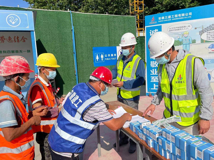 7月12日和7月13日上午,二公司副經理侯強、李國先后赴合肥市第一中學校園品質提升工程、新建藝術禮堂項目施工總承包工程(含安裝公司、裝飾公司職工)、合巢產業(yè)新城郭塘新村、映湖公租房項目施工二標段開展夏日“送清涼”活動,為70多名管理人員、400多名一線工人發(fā)放防暑降溫物品。