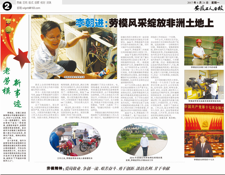 安徽工人日報——李朝進(jìn):勞模風(fēng)采綻放非洲土地上