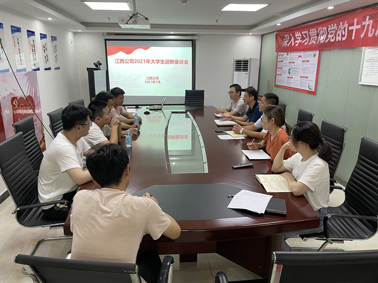 7月16日,江西公司召開2021年大學(xué)生迎新座談會,分公司新老員工匯聚一堂相互交流。