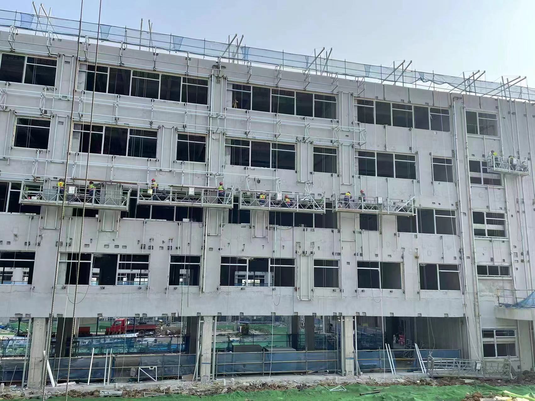 目前,淝河一中項目每天裝飾施工人員近550余人,外裝飾已搭設吊籃近500臺,10月,項目完成產(chǎn)值約4174萬元。