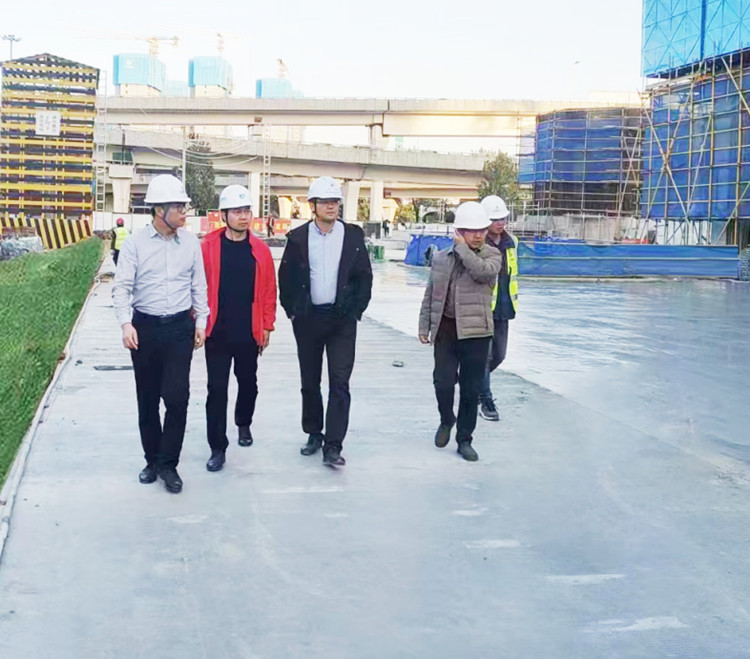 唐歡一行實地查看項目建設(shè)現(xiàn)場,認(rèn)真聽取了關(guān)于項目施工進度、施工重難點、安全質(zhì)量管控工作、智能建造等方面的匯報,對項目取得的建設(shè)進展給予了充分肯定,并要求項目再接再厲,在保證施工質(zhì)量的前提下加快施工進度,爭取早日顯雛形、展新貌、出形象。同時要繃緊安全生產(chǎn)弦,嚴(yán)格規(guī)范安全操作規(guī)程,落實各項安全舉措,筑牢安全生產(chǎn)防線。就項目投入使用的機器人和鋼板剪力墻安裝施工工法,唐歡指出,智能建造已成為發(fā)展的必然趨勢和轉(zhuǎn)型的重要抓手,中科院臨床研究醫(yī)院作為“省智能建造試點項目”,要充分挖掘發(fā)揮智能機器人在推進工程進度、提高施工質(zhì)量、增加經(jīng)濟效益等方面的優(yōu)勢,推動智能建造技術(shù)創(chuàng)新成果在項目建設(shè)的實際應(yīng)用中取得實效。