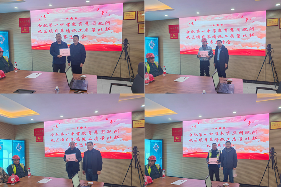 2023年12月31日上午,裝飾公司合肥一中淝河校區(qū)項(xiàng)目開展的為期一個(gè)月的幕墻施工質(zhì)量技能比拼大賽圓滿落幕。活動(dòng)邀請(qǐng)了項(xiàng)目甲方、監(jiān)理和分公司班子成員以及公司質(zhì)量科作為評(píng)委參加活動(dòng)。