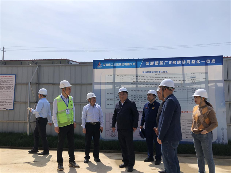 蕪湖市鏡湖區(qū)委書記郝代偉一行到蕪湖造船2號地塊項(xiàng)目進(jìn)行安全生產(chǎn)及創(chuàng)衛(wèi)工作檢查