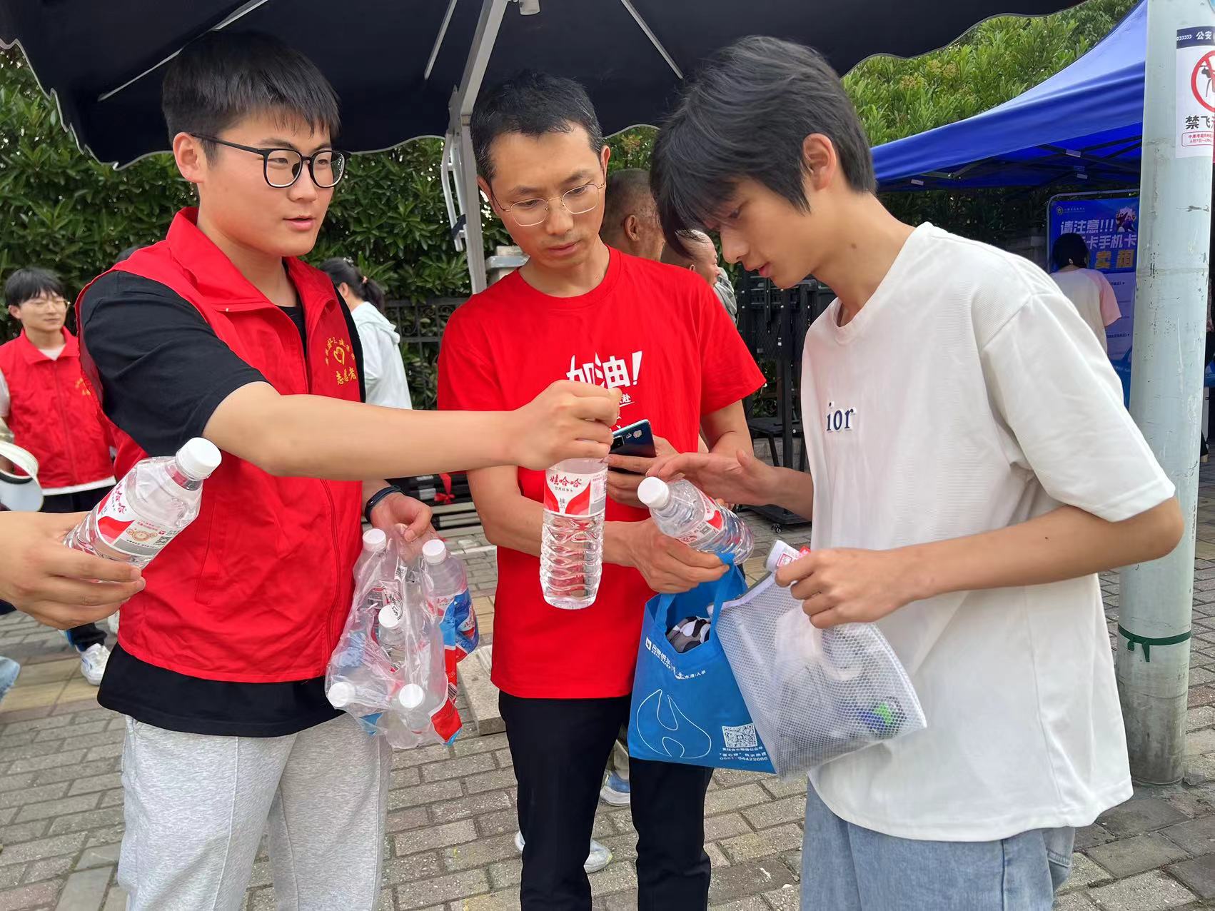五分公司安淮污水處理廠項目青年志愿者組成的高考助考團隊,在考場外為考生們提供礦泉水、扇子、清涼油等消暑物品,以及鉛筆、橡皮等文具,并送上溫馨祝福,鼓勵他們放松心態(tài),發(fā)揮最佳水平。
