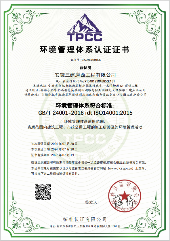 7月20日,三建廬西公司通過資質(zhì)小組的各項審查,獲得了質(zhì)量、環(huán)境、職業(yè)健康安全管理體系三項認證證書,標志著分公司在質(zhì)量、環(huán)境、職業(yè)健康安全管理方面達到了國家及行業(yè)的高標準要求,進一步提升了公司的市場競爭力和品牌信譽。
