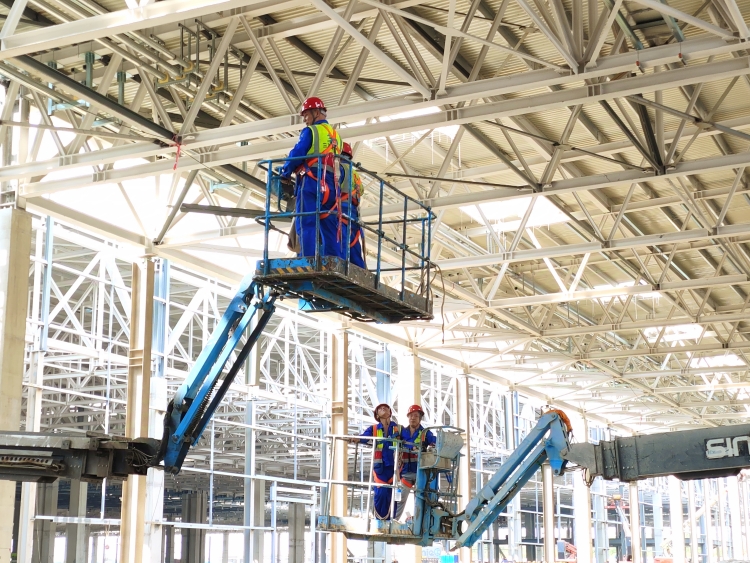分公司、項目部經(jīng)過周密規(guī)劃與統(tǒng)籌安排,優(yōu)化資源配置、集中優(yōu)勢兵力,攻堅重點任務(wù)。目前,現(xiàn)場已經(jīng)投入了近500名精干安裝施工作業(yè)人員和上百臺工程機(jī)械,采取BIM規(guī)劃排版、多工種協(xié)同交叉作業(yè)等多項手段,不等不靠、科學(xué)調(diào)度、主動作為,緊隨土建地坪澆筑進(jìn)度,同步、穿插推進(jìn)各項施工任務(wù)。針對項目施工區(qū)域大、作業(yè)面廣的特點,項目部充分“化整為零”,將龐大的施工園區(qū)劃分成若干個小工區(qū),實行認(rèn)領(lǐng)負(fù)責(zé),掛圖作戰(zhàn)、大干快上,確保項目如期完成、按時履約。同時,安裝項目部勇于創(chuàng)新,充分利用實時視頻會、現(xiàn)場碰頭會等高效溝通手段,及時協(xié)調(diào)解決施工中的難題、分享寶貴經(jīng)驗,高標(biāo)準(zhǔn)高質(zhì)量高效率推動項目建設(shè)。