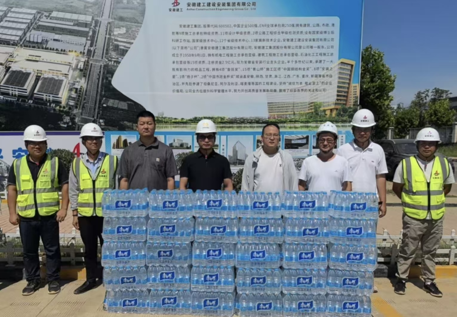7月10日上午,鳳陽(yáng)縣重點(diǎn)工程建設(shè)管理服務(wù)中心質(zhì)量安全股主任姜銳一行到公司鳳陽(yáng)縣小崗村農(nóng)產(chǎn)品加工產(chǎn)業(yè)園三期建設(shè)北區(qū)項(xiàng)目調(diào)研開(kāi)工建設(shè)情況,并為高溫堅(jiān)守崗位的一線建設(shè)者“送清涼”。