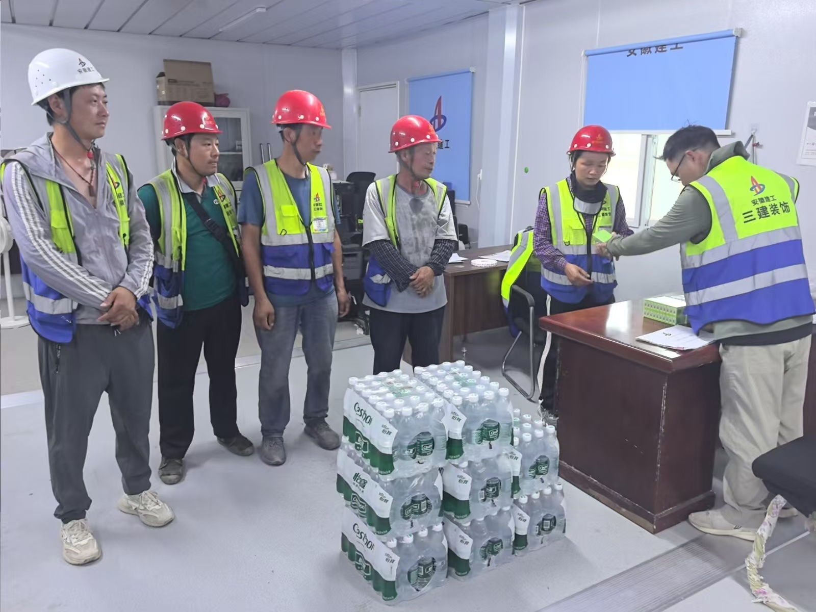 入夏以來,安徽大地持續(xù)被高溫炙烤,多地接連拉響高溫橙色預(yù)警,生產(chǎn)一線面臨嚴(yán)峻“烤”驗(yàn)。為切實(shí)保障作業(yè)人員的身體健康與生命安全,裝飾公司中國科大科技商學(xué)院裝飾項(xiàng)目強(qiáng)化部署、積極應(yīng)對(duì),多措并舉筑牢防暑降溫安全屏障,全力保障一線人員的身體健康和生命安全。