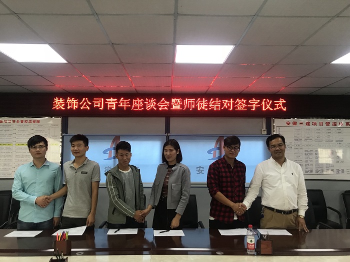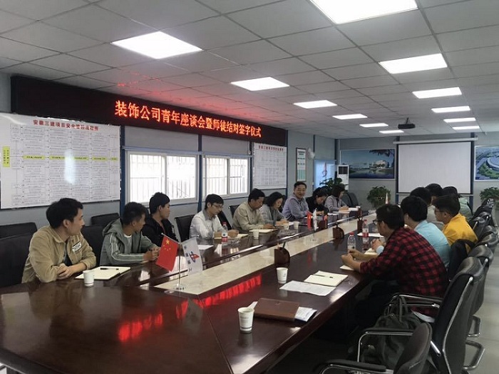 為了調(diào)動(dòng)裝飾公司青年職工的工作熱情和積極性,切實(shí)幫助青年職工解決工作和生活中的實(shí)際問題,10月12日下午,裝飾公司團(tuán)支部在創(chuàng)新館項(xiàng)目部會(huì)議室召開以“溝通交流,相互學(xué)習(xí),共同進(jìn)步”為主題的青年職工交流會(huì),并開展“師徒結(jié)對(duì)”活動(dòng)。公司經(jīng)理萬(wàn)和生、黨支部書記高莉、副經(jīng)理王皖、孫一甲及所有青年員工參加了交流會(huì)。