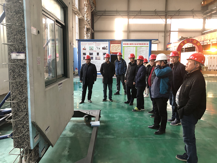 隨后,孫俊中一行來(lái)到安徽建工建筑工業(yè)有限公司,參觀了產(chǎn)業(yè)化構(gòu)件生產(chǎn)線,詳細(xì)了解了建筑產(chǎn)業(yè)化PC構(gòu)件的生產(chǎn)工藝流程以及一體化施工的有關(guān)環(huán)節(jié)。孫俊中一行人還在工業(yè)公司會(huì)議室和有關(guān)人員開(kāi)展了座談交流,王興明介紹了建筑產(chǎn)業(yè)化施工過(guò)程中的有關(guān)措施及管理,并詳細(xì)講解了安徽三建裝配式建筑生產(chǎn)施工情況。