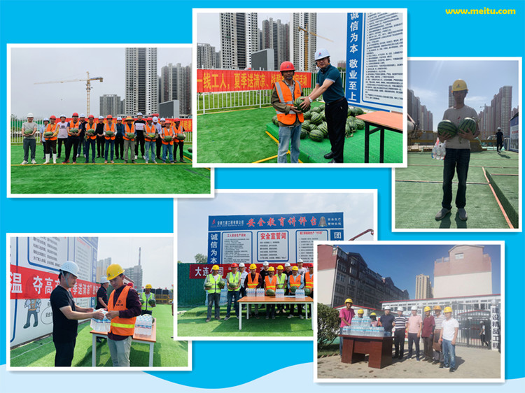 6月11日至6月15日,大連公司工會主席石業(yè)兵帶隊(duì),先后前往煙臺陽光海岸四期、五期項(xiàng)目部,濟(jì)南君逸府項(xiàng)目部、瀾湖郡幼兒園項(xiàng)目部、濟(jì)陽未來城A5項(xiàng)目部的施工現(xiàn)場,看望慰問一線工人,向高溫下堅(jiān)持工作、堅(jiān)守崗位的一線職工進(jìn)行慰問,并送上防暑降溫的藿香正氣液、西瓜、礦泉水等慰問品。“送清涼”活動猶如夏日里的涼風(fēng),沁潤著職工們的心田,激發(fā)了職工們的工作熱情。大家表示,一定堅(jiān)守崗位、認(rèn)真工作,在戰(zhàn)高溫的同時,戰(zhàn)疫情、搶工期、保目標(biāo)、促超產(chǎn),確保完成各項(xiàng)生產(chǎn)任務(wù)。