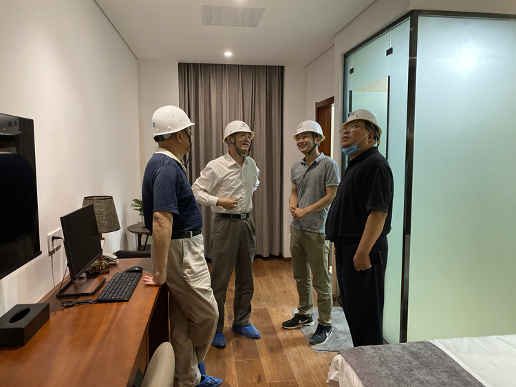 鄭成雨一行深入施工現(xiàn)場(chǎng),詳細(xì)聽(tīng)取了項(xiàng)目負(fù)責(zé)人關(guān)于樣板間制作以及下一步施工計(jì)劃等有關(guān)工作的匯報(bào)。鄭成雨在調(diào)研中對(duì)本項(xiàng)目整體設(shè)計(jì)布局、家具家電和設(shè)備材料選型以及樣板間制作進(jìn)度、質(zhì)量給予了充分肯定,尤其對(duì)本項(xiàng)目石膏板吊頂采取的防開(kāi)裂措施以及室內(nèi)防水措施予以高度評(píng)價(jià)。