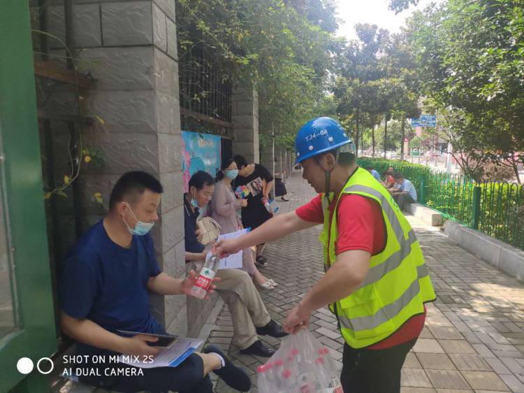 此外,我項(xiàng)目還組織人員給考點(diǎn)附近執(zhí)勤的交警、城管、供電保障、市政維護(hù)人員送去礦泉水解暑降溫。同時(shí),也為考場(chǎng)外忘帶水的考生家長們提供礦泉水。