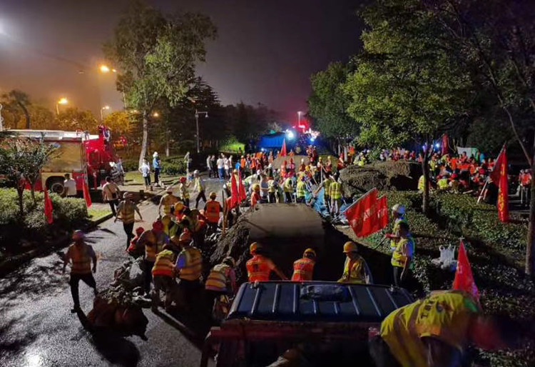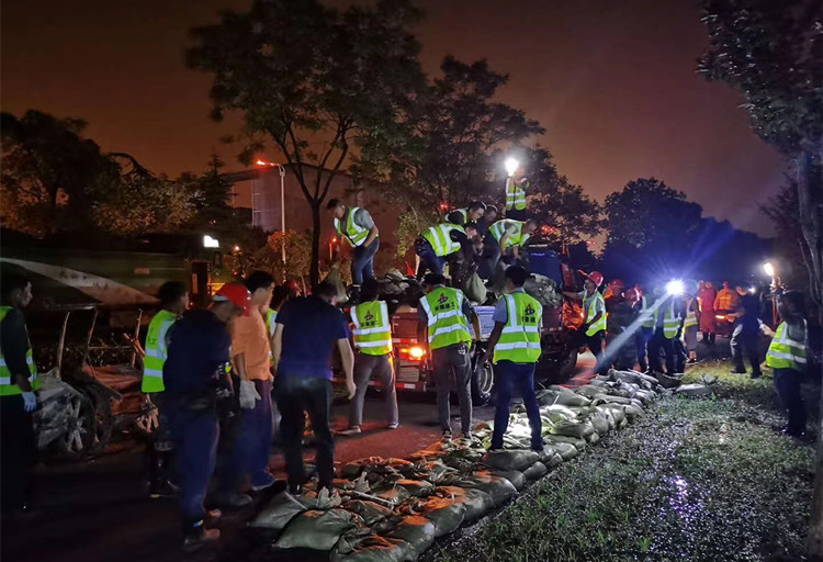 項(xiàng)目黨支部全體黨員及項(xiàng)目管理人員帶領(lǐng)現(xiàn)場(chǎng)工人共計(jì)50余人趕往環(huán)湖北路開(kāi)展抗洪搶險(xiǎn)工作。大家克服種種困難,挑燈夜戰(zhàn),全力奮戰(zhàn)在大堤上,至21日凌晨3時(shí)20分,在地勢(shì)較低的環(huán)湖北路筑起1米多高,300多米長(zhǎng)的沙袋墻,有效化解了巢湖水漫淹環(huán)湖大道的威脅。
