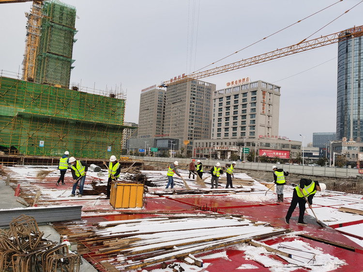 掃積雪 保進度 金寨明發(fā)超高層項目管理人員迅速恢復作業(yè)面