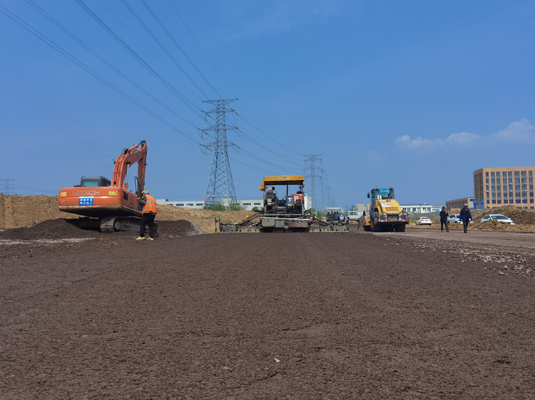 肥西產(chǎn)融項目豐樂河大道工程順利完成首次水穩(wěn)攤鋪作業(yè)