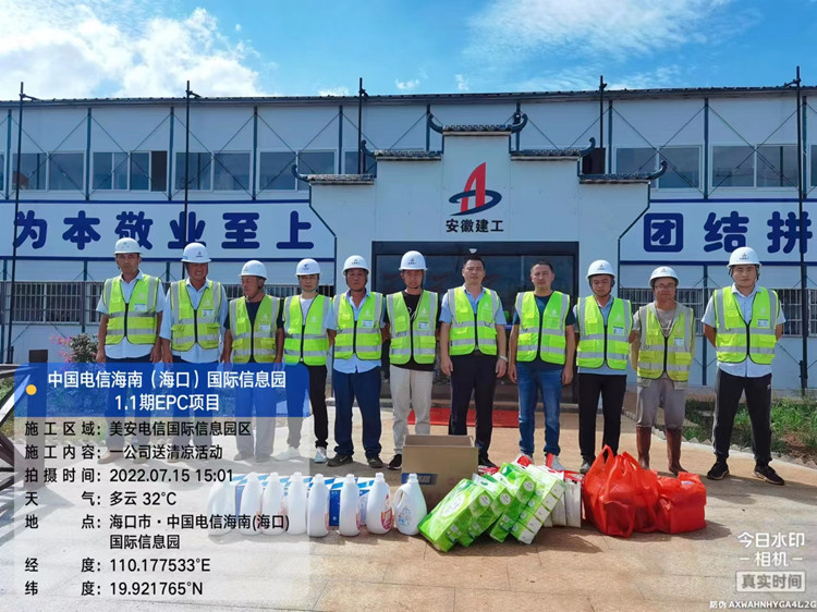 驕陽似火,酷暑難擋。持續(xù)的高溫天氣給一線建設(shè)者帶來嚴(yán)峻的“烤”驗,常態(tài)化疫情防控形勢下,為持續(xù)做好高溫作業(yè)勞動保護工作,保障奮戰(zhàn)在一線管理人員的健康安全,確保施工進度順利推進,7月15日,支部委員、副經(jīng)理李楊同志前往中國電信??趪H信息園項目、澄邁海藍福源南二期小學(xué)項目為一線管理人員送清涼,包括礦泉水、西瓜、洗衣液、毛巾、藿香正氣水、風(fēng)油精等防暑用品,讓他們感受到公司炎炎夏日里的清涼和關(guān)懷,感謝他們的堅守。李楊囑托:“入夏以來,項目要加強對工人的管理,更加關(guān)注他們的身體健康。