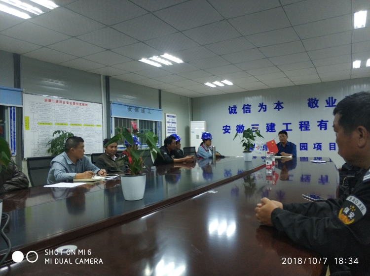 圖為山東棗莊融創(chuàng)御園項(xiàng)目利用晚間時(shí)間對塔吊信號工,電工,門衛(wèi)安全人員進(jìn)行技術(shù)交底