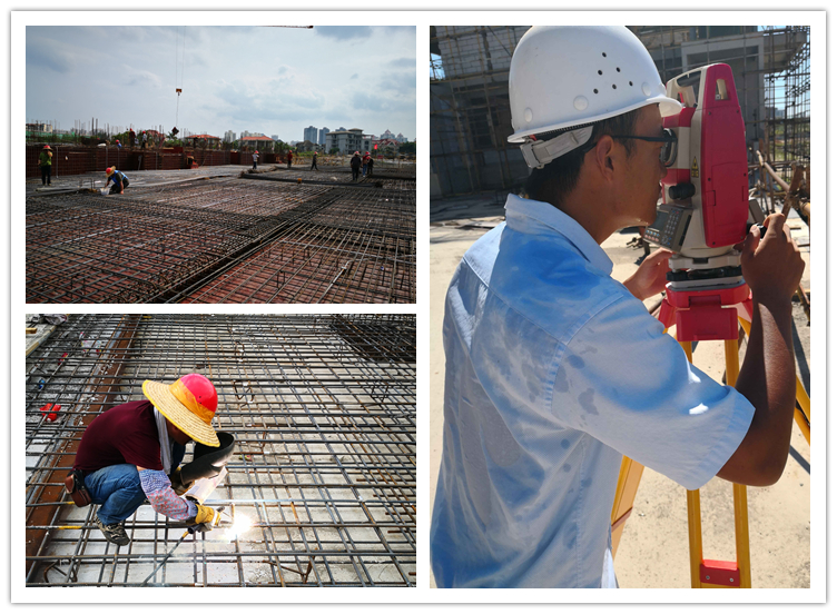一公司和風(fēng)福灣項(xiàng)目一線職工頭頂烈日綁扎、焊接鋼筋、抄平、防線,汗水見證奮斗!
