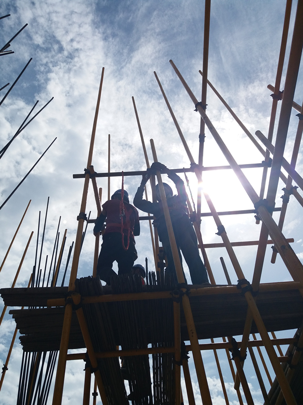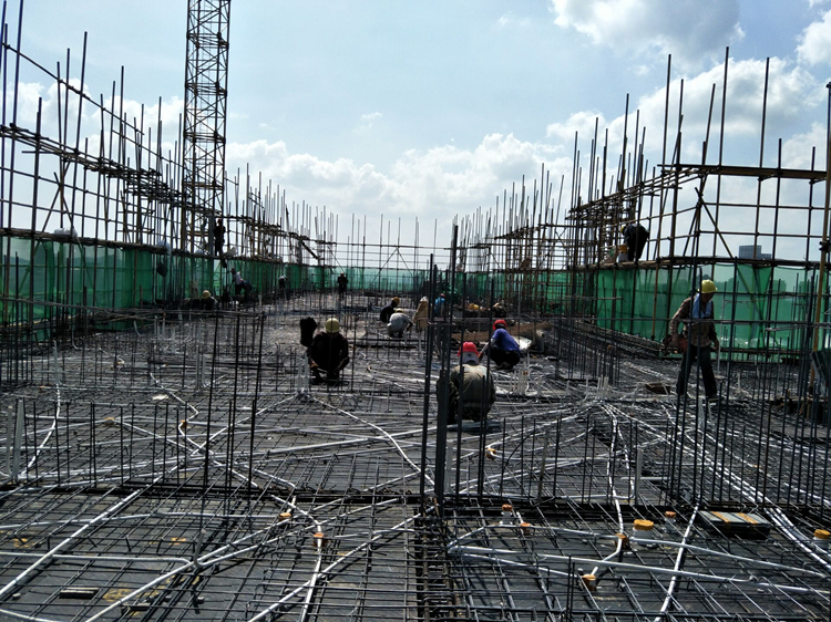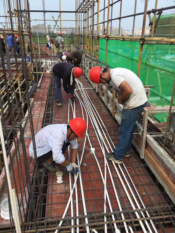為保證施工工期,二公司、七公司共同承建的濱湖沁園項(xiàng)目鋼筋班組工人冒著高溫天氣綁扎鋼筋,項(xiàng)目管理人員跟班作業(yè)同時(shí)進(jìn)行檢查。為防止管理人員及工人出現(xiàn)高溫中暑現(xiàn)象,項(xiàng)目制定了嚴(yán)格的作息時(shí)間,上午10:00-下午3:00時(shí)間段禁止室外作業(yè),以保證施工人員的身體健康。