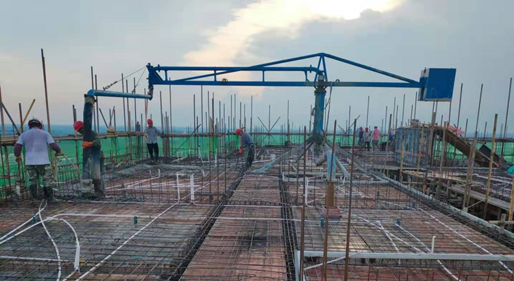 傍晚的固鎮(zhèn)華地公館項(xiàng)目現(xiàn)場依然高溫,項(xiàng)職工不畏酷暑正在開展混凝土澆筑作業(yè)
