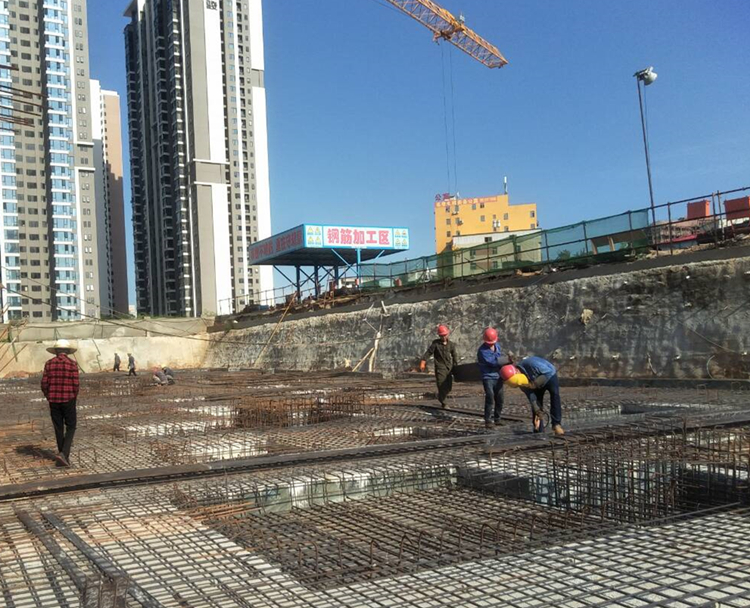 圖為廈門公司泉州君逸花園項(xiàng)目5#樓地下室底板正進(jìn)行鋼板止水帶焊接工作