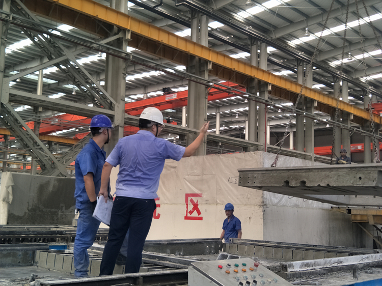 建筑工業(yè)公司生產(chǎn)車間機(jī)器轟鳴、熱浪滾滾,目前主要在為聚賢苑、明發(fā)、沁園供應(yīng)項(xiàng)目構(gòu)件