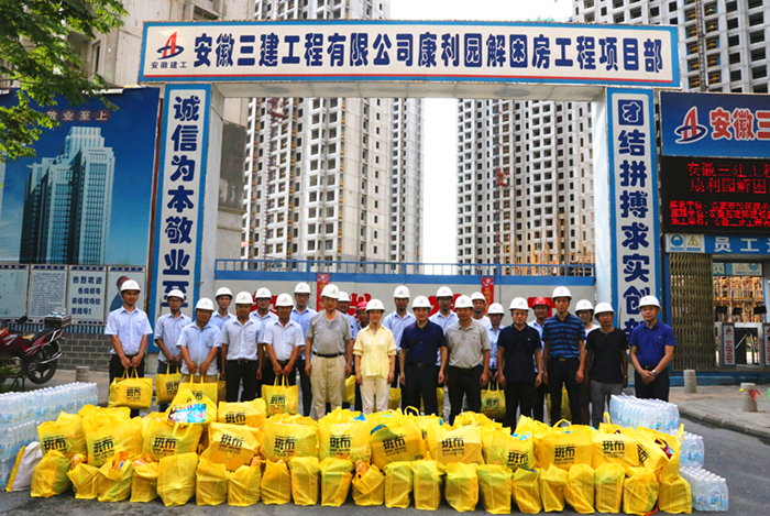 趙馨群親自將大米、洗衣粉、清涼飲品等防暑降溫用品送到一線職工手中,叮囑一線施工人員務(wù)必要把高溫環(huán)境下的安全生產(chǎn)工作放在突出位置,切實(shí)做好夏季防暑降溫工作。