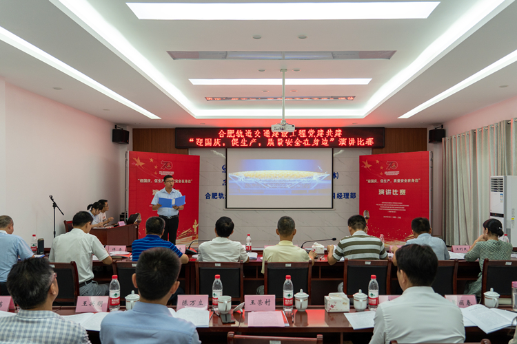 9月10日下午,合肥市軌道建設工程黨建共建“迎國慶、促生產,質量安全在身邊”征文演講比賽在公司軌道交通項目部會議室精彩開賽。本次黨建共建活動由合肥市城鄉(xiāng)建設局軌道質量安全監(jiān)督站黨支部,中鐵七局、安徽三建合肥軌道4號線4標聯合黨支部,中鐵四局合肥軌道5號線4標黨支部,中鐵電化局合肥軌道3號線供電1標黨支部聯合開展。合肥軌道監(jiān)督站站長陳萬立、副站長汪勁松,中鐵七局武漢公司黨委書記吳越、副總經理馮明輝,中鐵電氣化局西安公司黨委副書記楊永乾、中鐵四局四公司組織部部長范君賢,公司黨委副書記黃麗春、副總經理王興明參加活動?;顒舆€邀請了新華社、中國網等新聞媒體專家做評委。