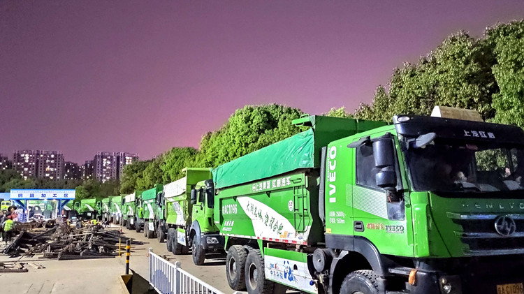 4月9日凌晨三點半,2019年新進場大學生吳培,目送最后一輛渣土車駛出安徽三建合肥市中心圖書館項目大門,收回了爆閃燈、警示牌等土方外運設(shè)施后,回到了辦公室在施工日志上記下:“今日投入外運車輛49臺,外運土方227車,4000方”結(jié)束了一天的工作。