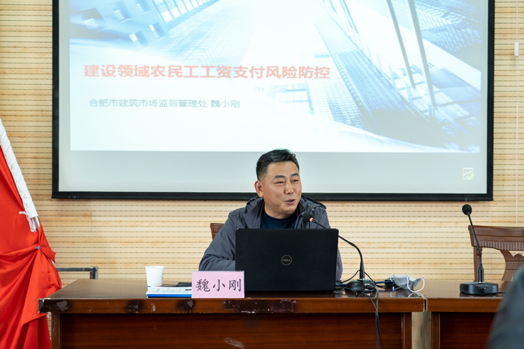 為貫徹落實(shí)國務(wù)院《保障農(nóng)民工工資支付條例》,進(jìn)一步強(qiáng)化公司勞務(wù)隊(duì)伍管理,保障農(nóng)民工工資支付,降低企業(yè)勞務(wù)糾紛和用工風(fēng)險,4月24日公司邀請合肥市城鄉(xiāng)建設(shè)局建筑市場監(jiān)督管理處副主任魏小剛,以建設(shè)領(lǐng)域農(nóng)民工工資風(fēng)險防控為主題,對《條例》和相關(guān)政策進(jìn)行了解析。