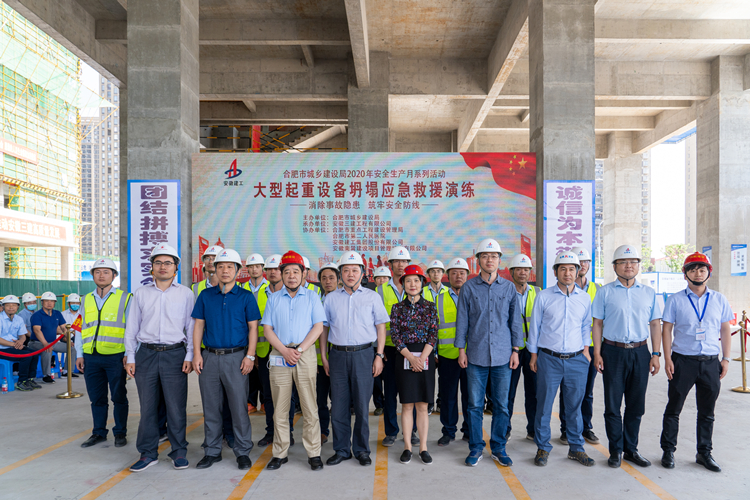 本次應急救援演練活動由合肥市城鄉(xiāng)建設局主辦、安徽三建工程有限公司承辦。合肥市城鄉(xiāng)建設局質量安全處副處長胡景琦、合肥市建筑質量安全監(jiān)督站副站長孫巍、合肥市重點工程建設管理局公益分局項目辦主任周松、合肥市二院副院長魏敦英、安徽建工集團工管部(安全監(jiān)察局)副局長葛輝、安徽南巽建設項目管理投資公司董事長李培貴以及安徽三建黨委副書記、總經理何洪春、副總經理李建成等出席活動。安徽三建所屬各單位分管領導、安全科長、合肥地區(qū)項目經理及項目安全負責人等100余人現(xiàn)場參加活動,行業(yè)內部5千余人網絡在線觀看活動直播。