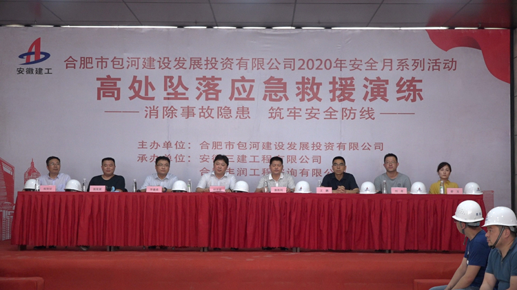 6月15日,一場高處墜落應(yīng)急救援演練活動在安徽三建公司葛大店幸福城A區(qū)項目開展。救援演練活動由合肥市包河建設(shè)發(fā)展投資有限公司主辦,安徽三建工程有限公司與合肥豐潤工程咨詢有限公司承辦。包河區(qū)住建局副局長郭勝利、包河區(qū)住建局質(zhì)安站監(jiān)督科科長祝星星、包河建發(fā)副總經(jīng)理王鵬、安徽三建公司黨委副書記、總經(jīng)理何洪春、副總經(jīng)理李建成、合肥豐潤工程咨詢有限公司有關(guān)領(lǐng)導(dǎo)觀摩了演練活動。
