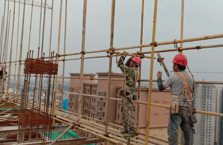 8月份以來(lái),皖北連天35°以上高溫天氣,亳州時(shí)代樾府項(xiàng)目正值上結(jié)構(gòu)階段,架業(yè)公司要求外架搭設(shè)班組嚴(yán)格遵守上級(jí)主管部門(mén)和項(xiàng)目部要求,錯(cuò)峰上班、合理安排工作,既要搶抓工期,也要遵守安全搭設(shè)紀(jì)律,確保高溫期間施工安全。圖為工人師傅在搭設(shè)防護(hù)架。