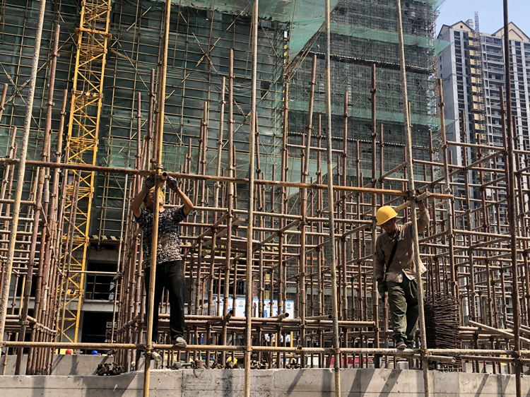 下午4點(diǎn),室外溫度依然居高不下,在安徽三建五公司東城悅苑項(xiàng)目現(xiàn)場(chǎng),工人師傅正在支模搶工期
