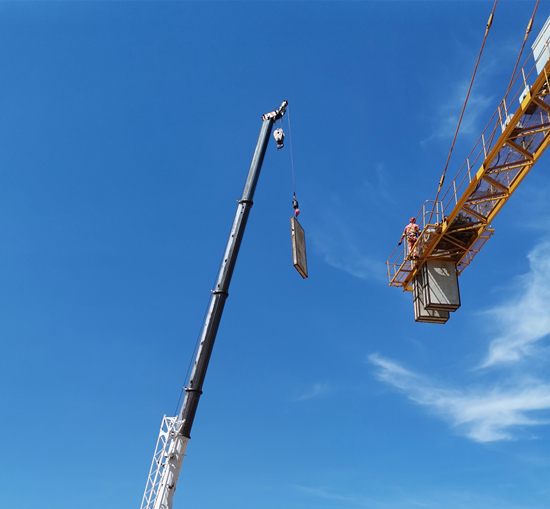 設(shè)備租賃公司吳金國(guó)等派駐六安一中項(xiàng)目班組冒著炎熱高溫,熱浪滾滾天氣,揮汗如雨,上衣汗透,堅(jiān)持把十多臺(tái)塔吊裝好