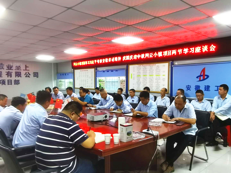 國(guó)慶期間九公司班子分赴各地項(xiàng)目慰問(wèn)堅(jiān)守一線的項(xiàng)目職工并開展學(xué)習(xí),圖為九公司支部書記侯田漢慰問(wèn)淮南網(wǎng)云小鎮(zhèn)項(xiàng)目,并帶領(lǐng)項(xiàng)目職工學(xué)習(xí)習(xí)近平考察安徽重要講話精神。