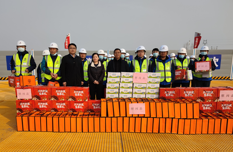 在項目現(xiàn)場公司領(lǐng)導(dǎo)仔細詢問了項目的進展情況及目前需要解決的重難點問題,詢問了管理人員和工人們的家庭和生活等情況。隨后在項目部現(xiàn)場臨時會議室召開了慰問座談會。